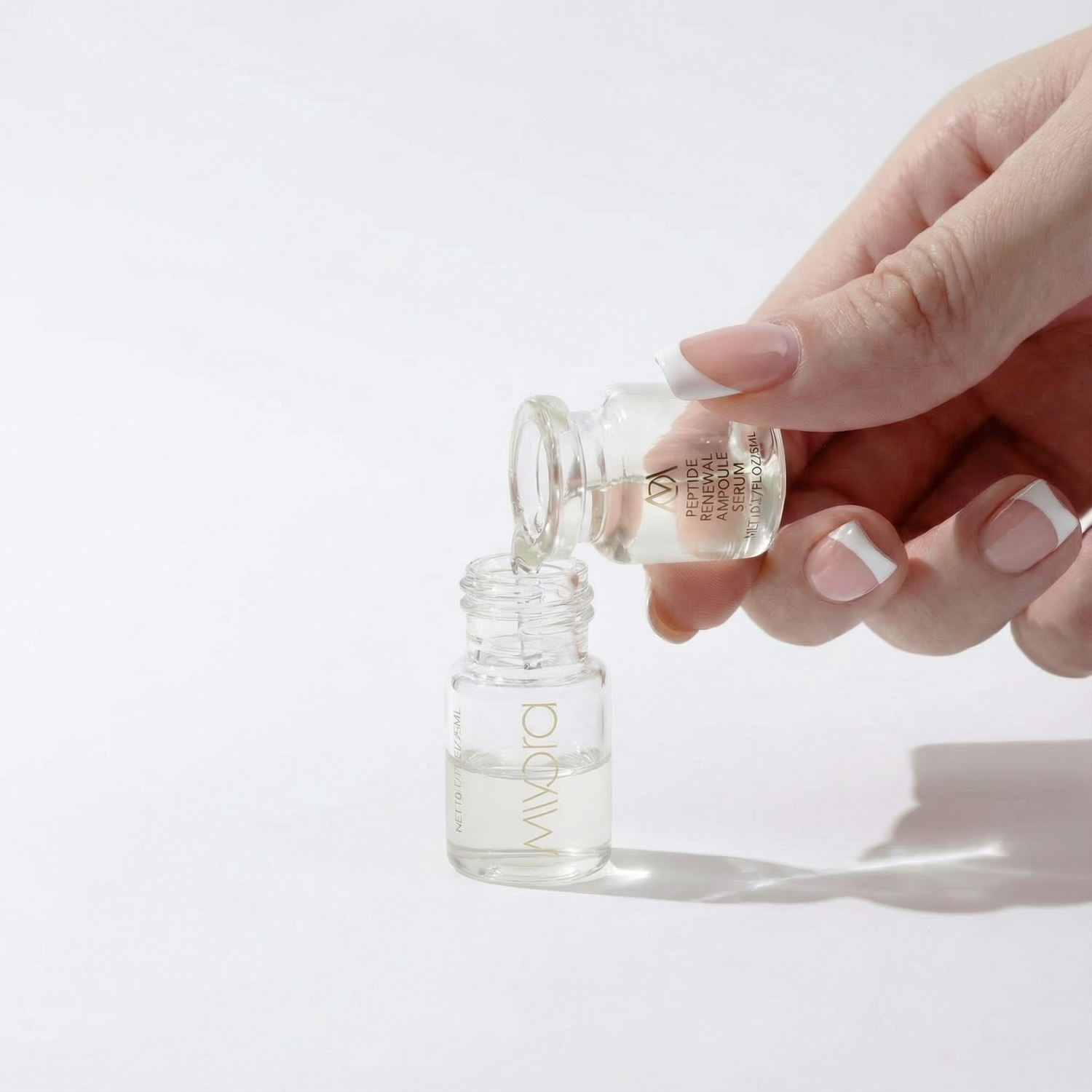 Le Sérum Miyora a été formulé sur mesure : Replexium (champion de la régénération), acide hyaluronique bas poids moléculaire, niacinamide, panthénol. Texture et viscosité calibrées au micron près.