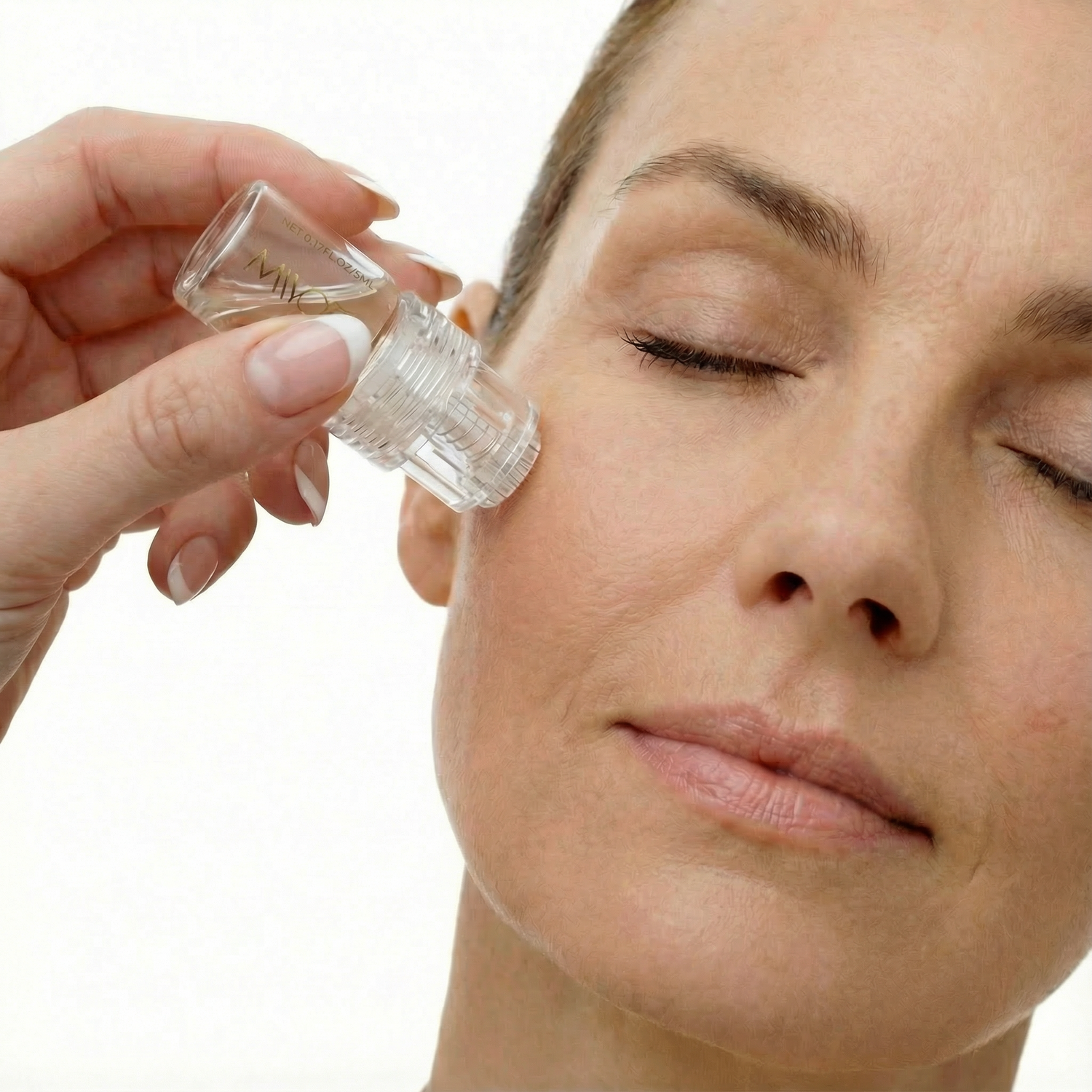 Nos micro-aiguilles en or 24K créent des micro-canaux pour diffuser le Replexium et les peptides régénérants au cœur de votre épiderme, là où le collagène se forme et où votre peau se renouvelle vraiment.